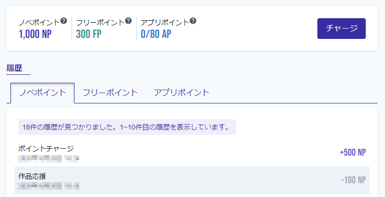 ノベポイントを使用することによって、契約作品の有料話数の購読や、作品の応援をすることができます。