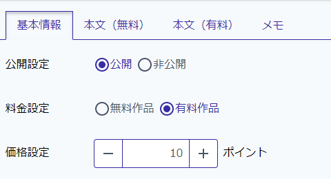 「短編作品」では無料パートと有料パートを分けて文章の入力ができます。
