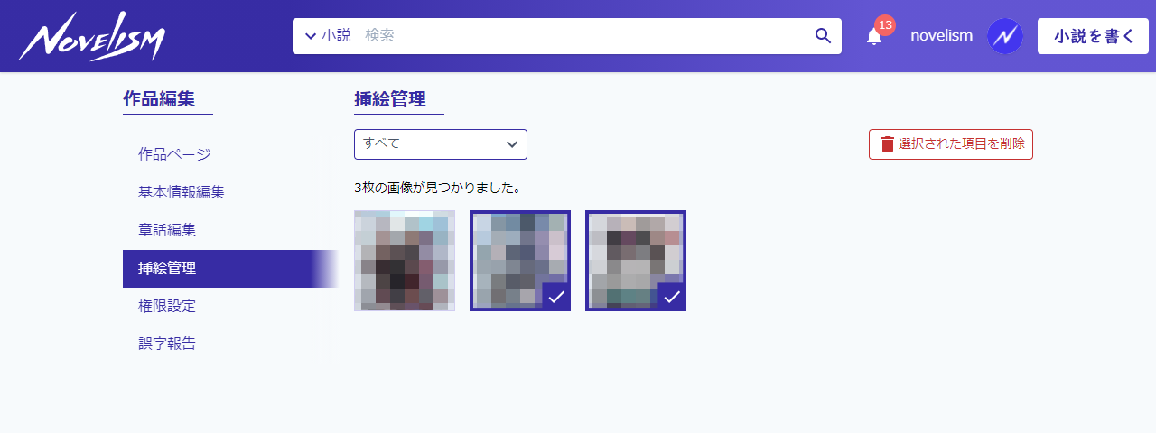 ※挿絵の削除は、「挿絵管理」ページでも行えるため、できるだけそっちのほうをご利用ください。