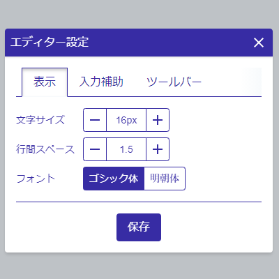 「文字サイズ」は12~32pxの間で、「行間」は1.25~3の間でそれぞれ調整できます。
