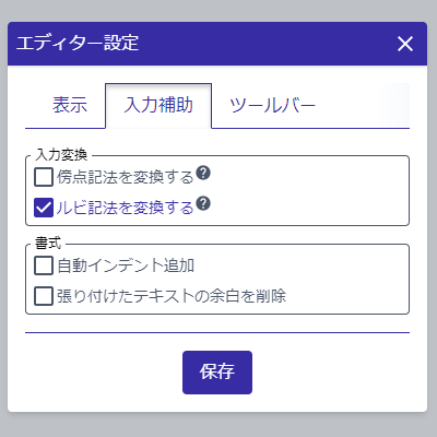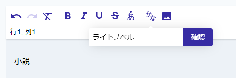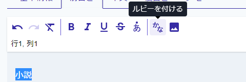 その状態で上部にある「ルビを付ける」を選択し、入力いただくとルビが設定されます。