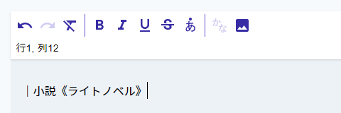 また本文と前書き、あとがきでは必要に応じて下記の便利な補助機能をご利用いただけます。(太字、斜体、下線、取り消し線、傍点、ブロック、区切り線、特殊文字)