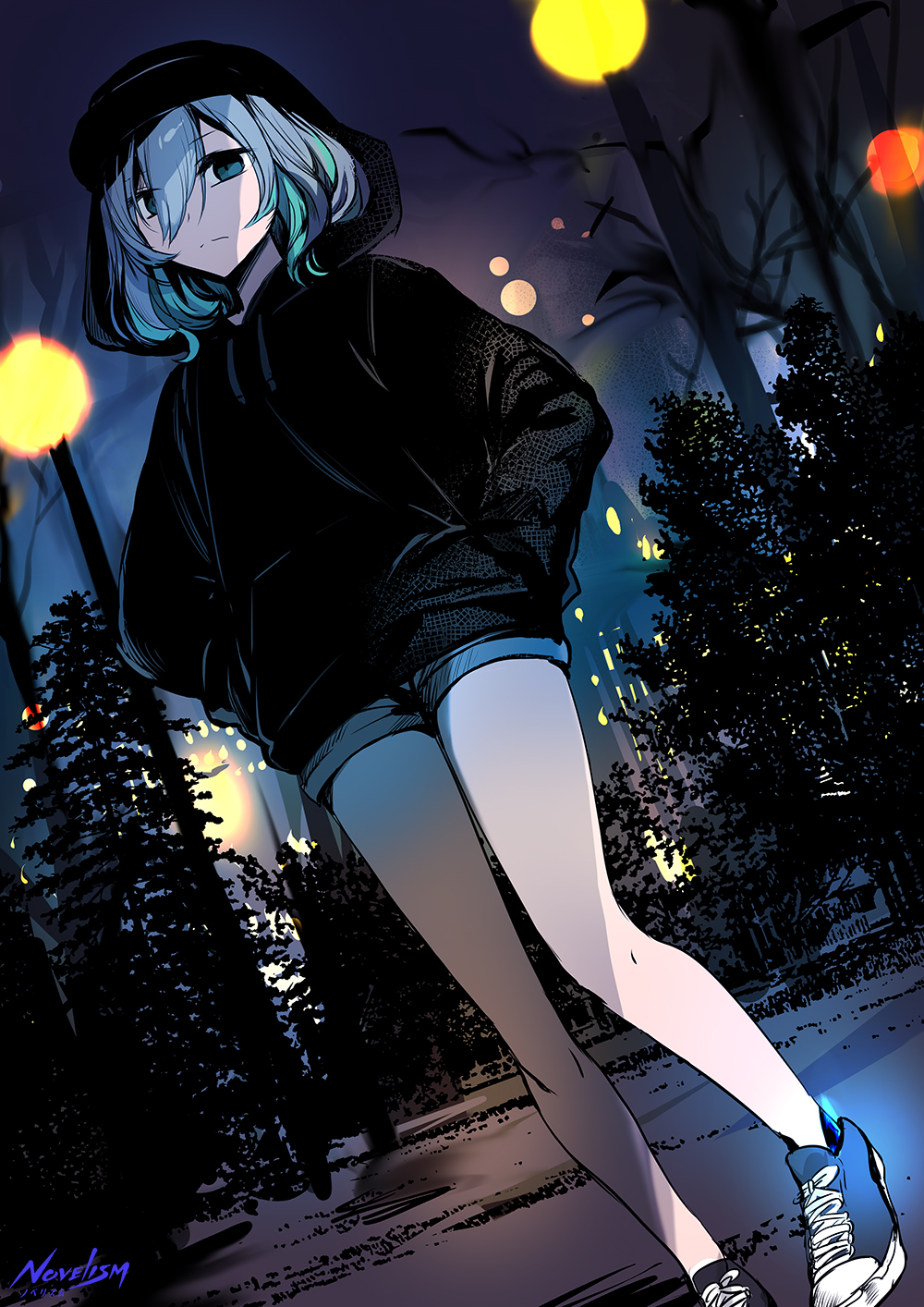 その隣で、海女露さんはポケットから取り出した長いチェーンをバスケットゴールの真下で糸を垂らすようにゆっくり落として、丸を描いていた。
