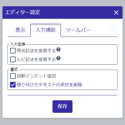 ノベリズムの編集画面以外で執筆されたものを、貼り付けされる際、不要な余白を削除することができます。