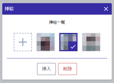 「挿絵」ボタンをクリックすると、挿絵挿入用ダイアログが表示されます。