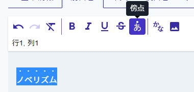 その状態で上部にある「傍点」を選択していただくと傍点が設定されます。